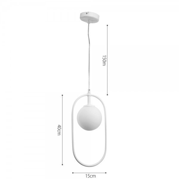 Κρεμαστό φωτιστικό σε λευκή απόχρωση και λευκή οπαλίνα 1XG9 D:40cm