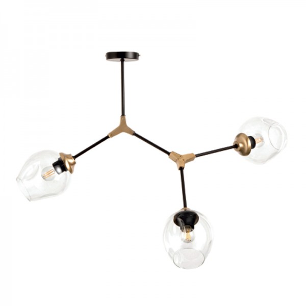 Πρόκειται για ένα μεταλλικό κρεμαστό φωτιστικό μαύρου χρώματος με χρυσαφί διακριτικά στοιχεία και τρεις λαμπτήρες. Το γυαλί είναι διάφανο, αλλά υπάρχει και η επιλογή του φιμέ χρώματος. Ο βραχίονας με τους δύο λαμπτήρες κινείται για να λάβει το επιθυμητό σχήμα. Η μίνιμαλ σχεδίασή του το τοποθετεί σε οποιονδήποτε μοντέρνο εσωτερικό χώρο.