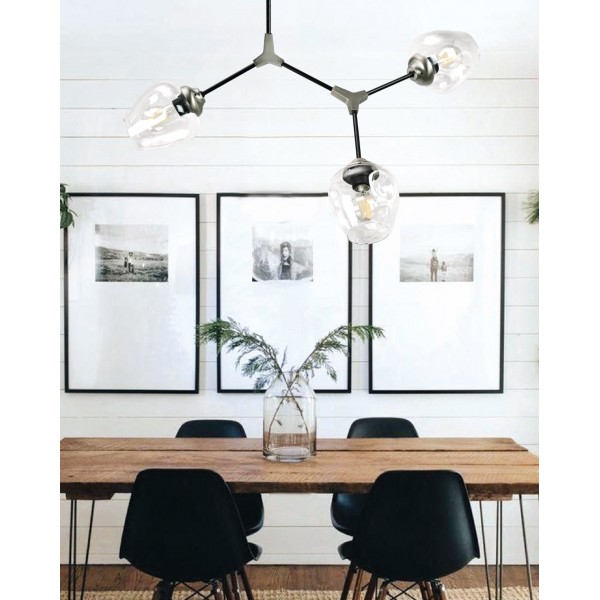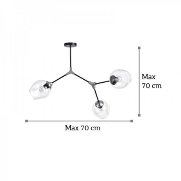 Κρεμαστό φωτιστικό από μαύρο μέταλλο και διάφανο γυαλί 3XE27 D:70cm