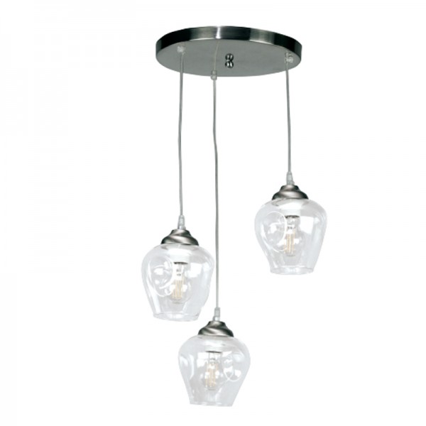 Κρεμαστό φωτιστικό από νίκελ ματ μέταλλο και διάφανο γυαλί 3XE27 D:30cm