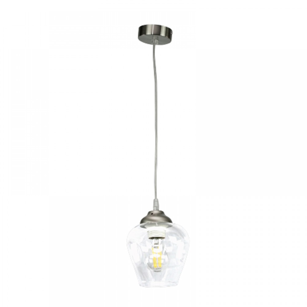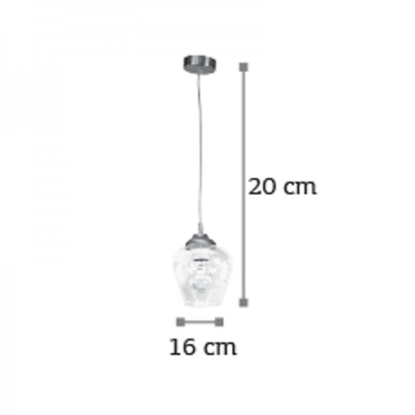Κρεμαστό φωτιστικό από νίκελ ματ μέταλλο και διάφανο γυαλί 1XE27 D:16cm