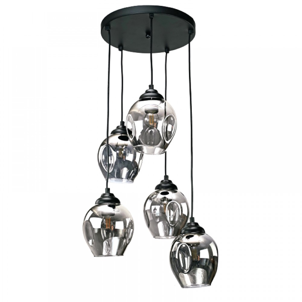 Κρεμαστό φωτιστικό από μαύρο μέταλλο και φιμέ γυαλί 5XE27 D:30cm