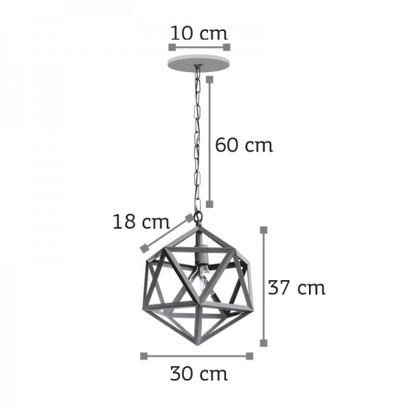Πρόκειται για ένα μεταλλικό κρεμαστό φωτιστικό σε χρώμα μαύρο. Η μίνιμαλ γεωμετρική του σχεδίαση το τοποθετεί σε οποιονδήποτε μοντέρνο εσωτερικό χώρο. Η ανάρτησή του ρυθμίζεται για να λάβει το επιθυμητό ύψος. Το φως διαχέεται σε όλον τον χώρο ομοιόμορφα.