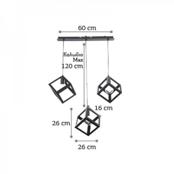 Κρεμαστό φωτιστικό από μαύρο μέταλλο 3XE27 D:60cm
