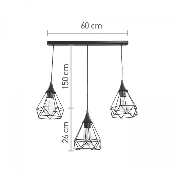 Κρεμαστό φωτιστικό από μαύρο μέταλλο 3XE27 D:60cm