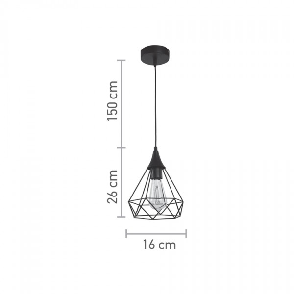 Κρεμαστό φωτιστικό από μαύρο μέταλλο 1XE27 D:16cm (4024-BL)