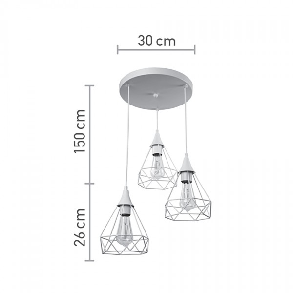 Κρεμαστό φωτιστικό από λευκό μέταλλο 3XE27 D:30cm