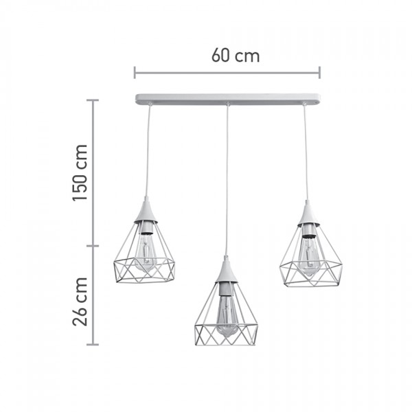 Κρεμαστό φωτιστικό από λευκό μέταλλο 3XE27 D:60cm