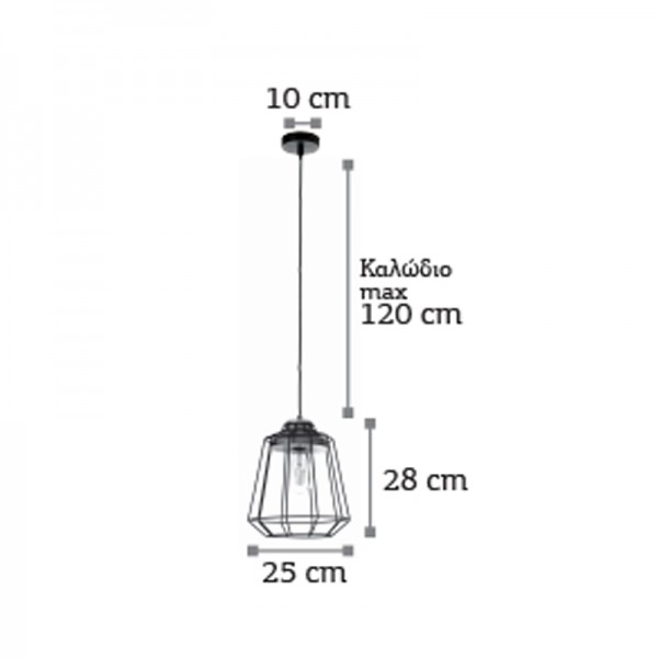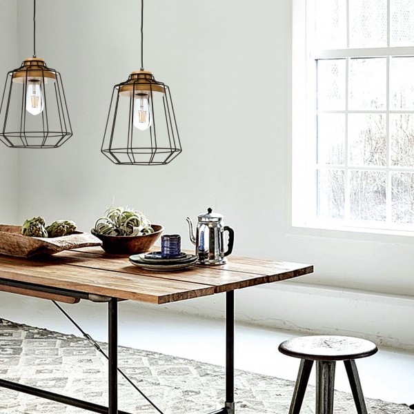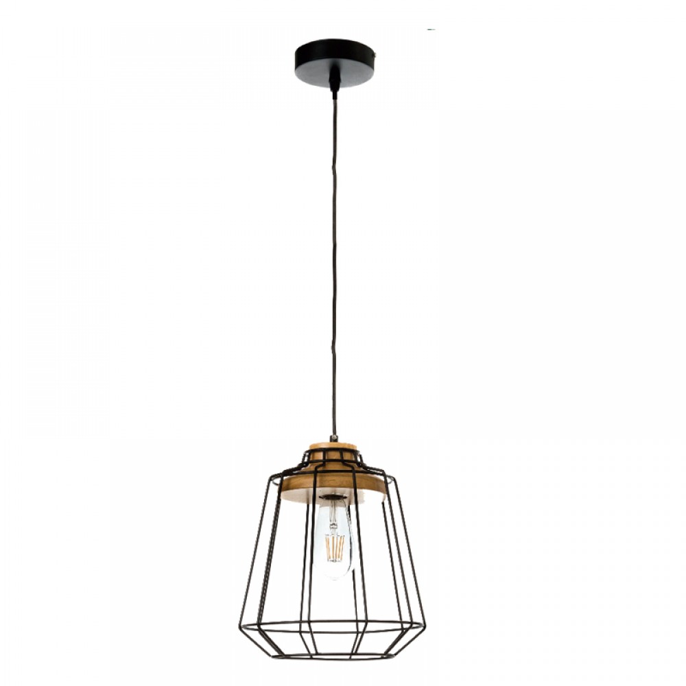 Κρεμαστό φωτιστικό από μαύρο μέταλλο και ξύλο 1XE27 D:25cm