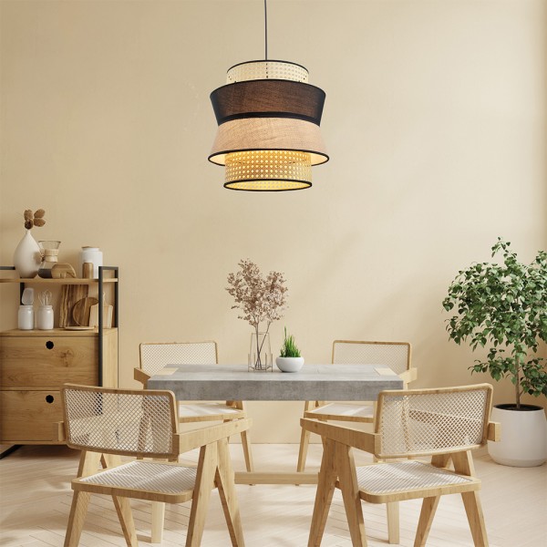 Μονόφωτο καπέλο ψάθα-ύφασμα 1XE27 D:30cmX25cm
