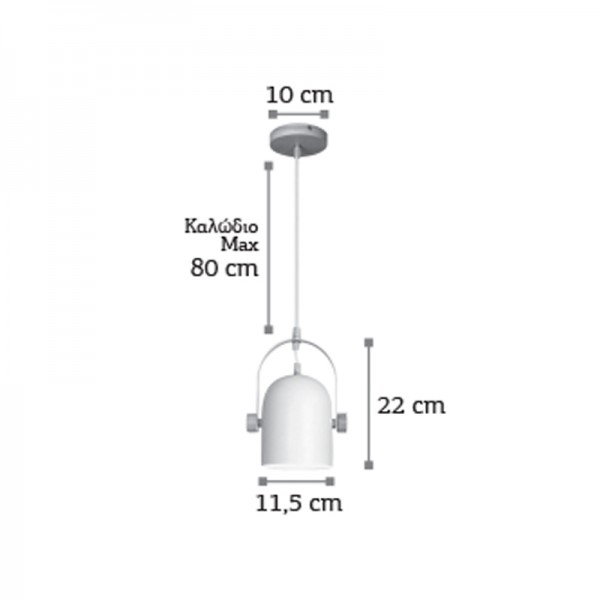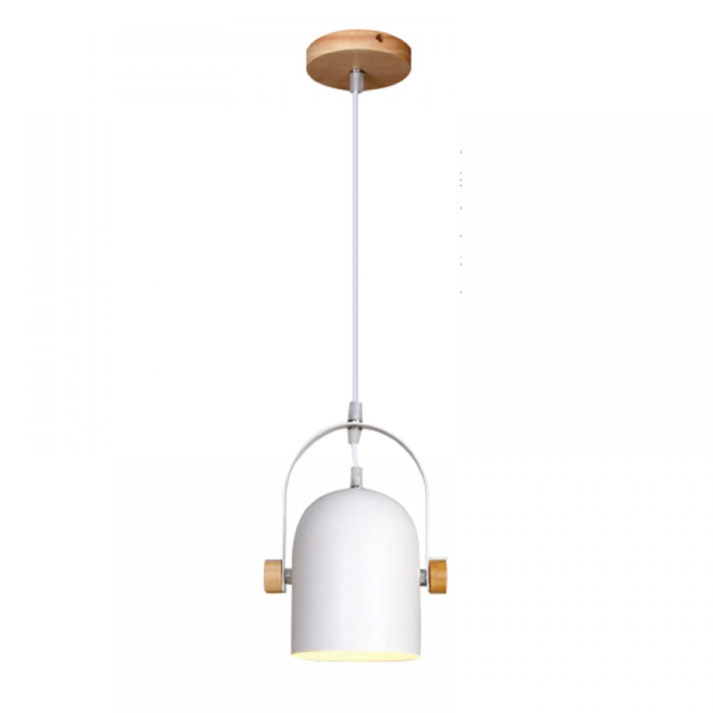Κρεμαστό φωτιστικό από λευκό μέταλλο και ξύλο 1XE27 D:11,5cm