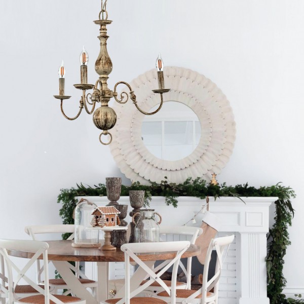 Κρεμαστό φωτιστικό από μέταλλο σε λευκή πατίνα 3XE14 D:60cm