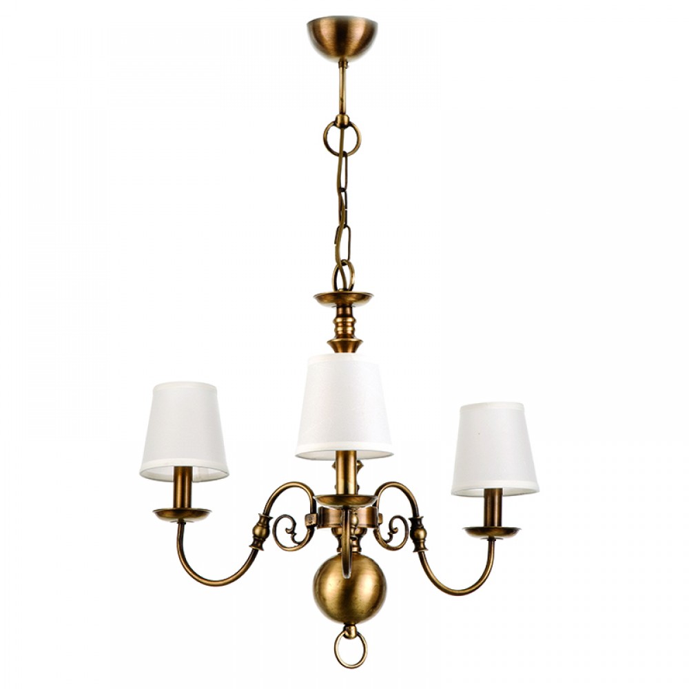 Πρόκειται για ένα κρεμαστό φωτιστικό από οξυντέ μέταλλο με τρεις λαμπτήρες. Κατάλληλο για διακόσμηση κλασσικών εσωτερικών χώρων. Η μεταλλική ανάρτηση είναι ρυθμιζόμενη για να προσαρμοστεί στον κάθε χώρο. Διατίθεται και λευκό υφασμάτινο καπέλο για πιο απαλό φωτισμό το οποίο θα πρέπει να ζητηθεί επιπλέον.