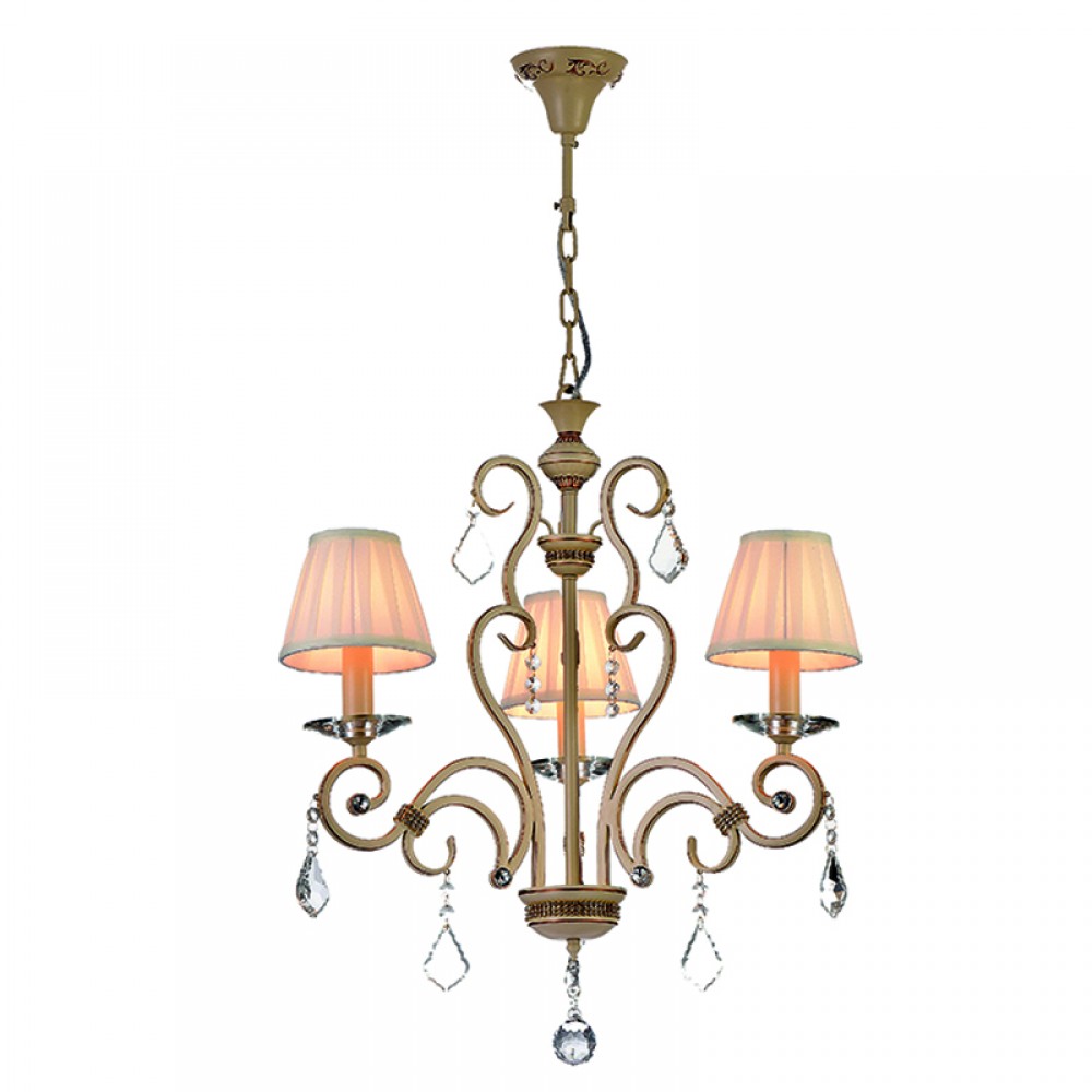 Κρεμαστό φωτιστικό από μπεζ μέταλλο κρύσταλλα και υφασμάτινο καπέλο 3XE14 D:50cm (5276-3)