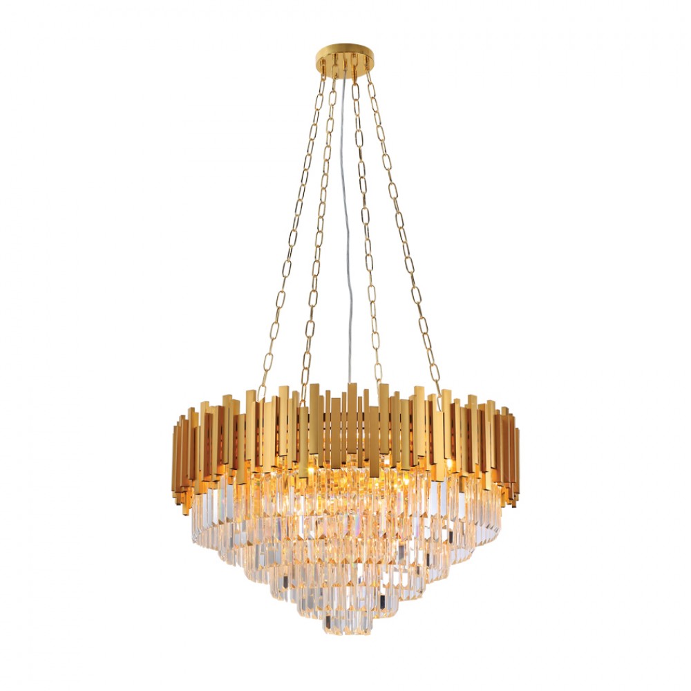 Κρεμαστό φωτιστικό από χρυσαφί αλουμίνιο και κρύσταλλα 12XE14 D:80cm