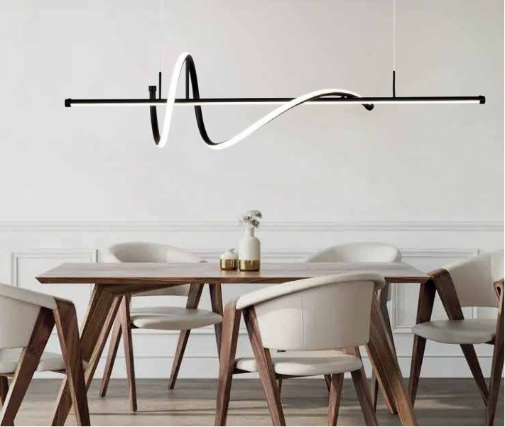 Πρόκειται για κρεμαστό φωτιστικό κατασκευασμένο από λευκό ακρυλικό και μαύρο μέταλλο μίνιμαλ σχεδίασης.Ο φωτισμός led μπορεί να λάβει από θερμή ως και ψυχρή απόχρωση και είναι ρυθμιζόμενο από τη βάση.