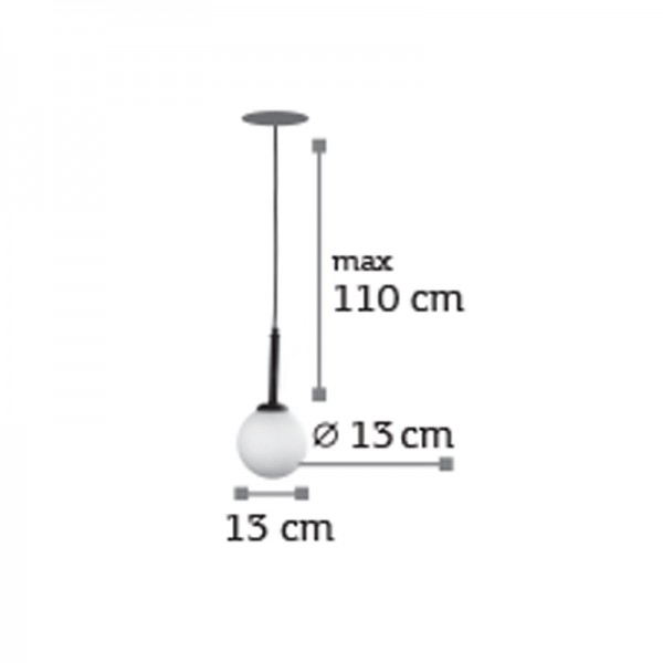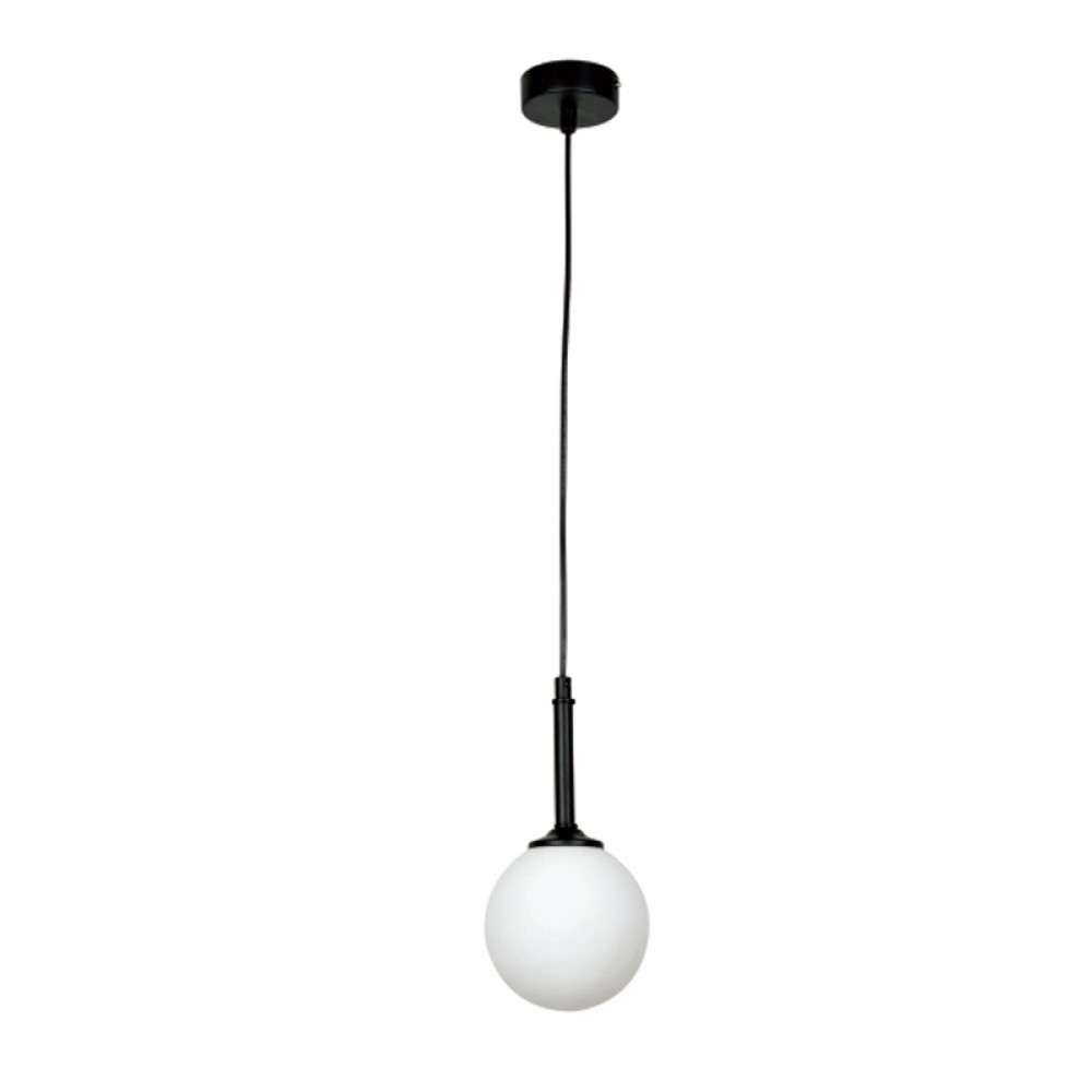 Κρεμαστό φωτιστικό από μαύρο μέταλλο και λευκή οπαλίνα 1XG9 D:13cm
