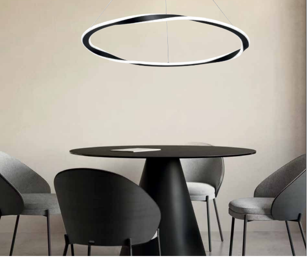 Πρόκειται για κρεμαστό φωτιστικό κατασκευασμένο από λευκό ακρυλικό και μαύρο μέταλλο μίνιμαλ σχεδίασης.Ο φωτισμός led μπορεί να λάβει από θερμή ως και ψυχρή απόχρωση και είναι ρυθμιζόμενο από τη βάση.