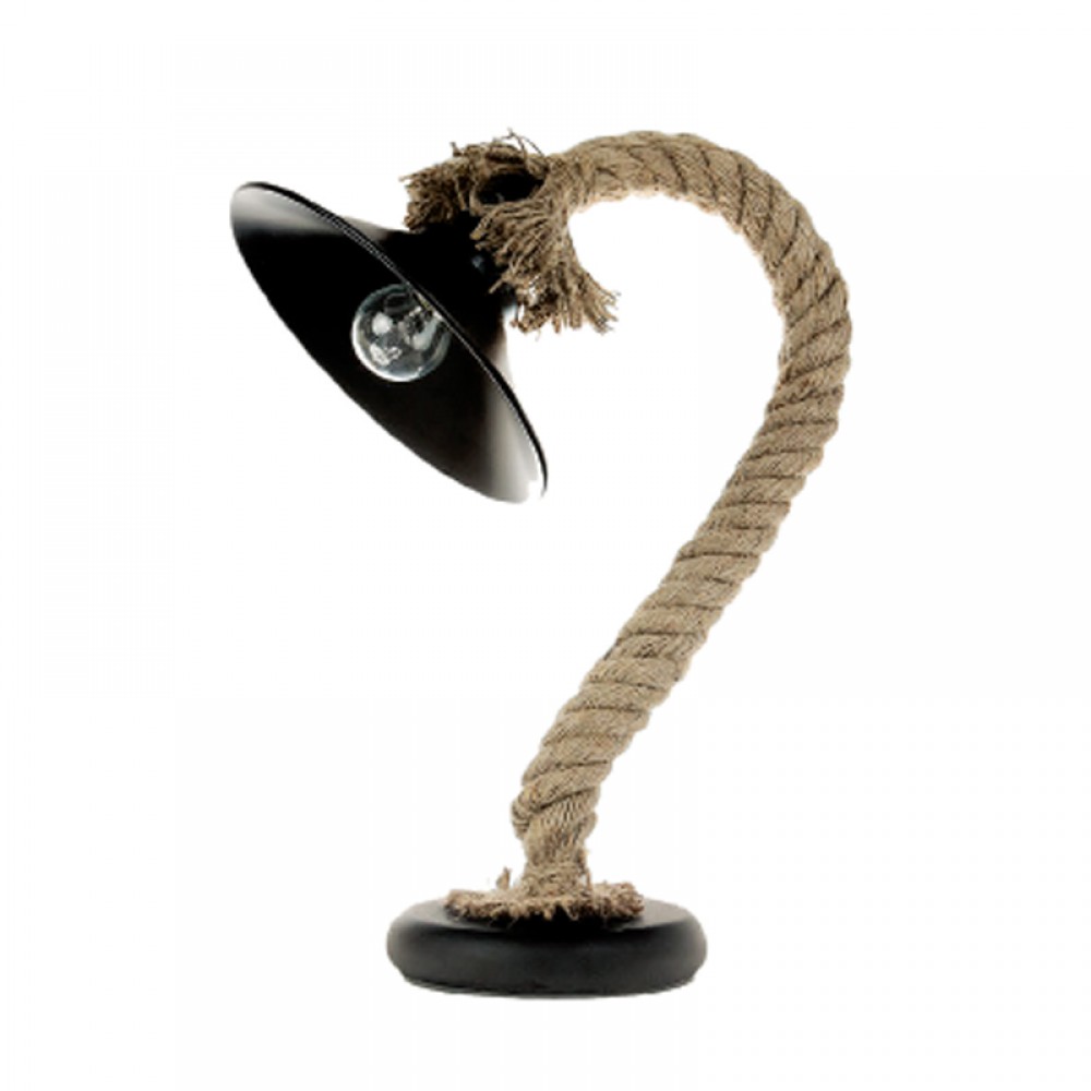 Επιτραπέζιο φωτιστικό με συνδυασμό καφέ σχοινιού και μαύρου μετάλλου. Μπορεί να διακοσμήσει οποιονδήποτε εσωτερικό χώρο, όπως σαλόνι και κρεβατοκάμαρα.