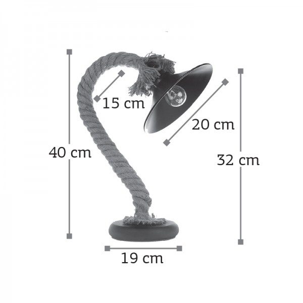 Επιτραπέζιο φωτιστικό με συνδυασμό καφέ σχοινιού και λευκού μετάλλου. Μπορεί να διακοσμήσει οποιονδήποτε εσωτερικό χώρο, όπως σαλόνι και κρεβατοκάμαρα.