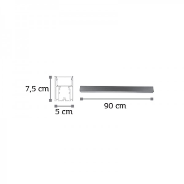Πρόκειται για ένα μαύρο κρεμαστό φωτιστικό κατασκευασμένο από αλουμίνιο. Στο κάτω μέρος του υπάρχει λευκή ακρυλική επιφάνεια που καλύπτει τον led φωτισμό απόχρωσης φυσικού χρώματος. Η ανάρτησή του είναι ρυθμιζόμενη ώστε να προσαρμοστεί σε κάθε χώρο. Μπορεί να τοποθετηθεί και ως φωτιστικό οροφής. Η γεωμετρική του σχεδίαση ταιριάζει σε όλους τους μοντέρνους χώρους.
