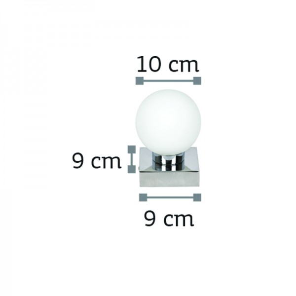 Επιτοίχιο φωτιστικό από χρώμιο μέταλλο και λευκή οπαλίνα 1XG9 D:9cm