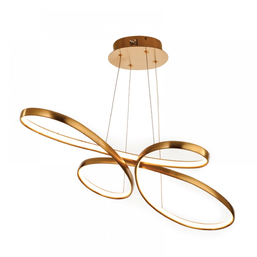 Κρεμαστό φωτιστικό LED 56W 3CCT (by switch) από αλουμίνιο σε χρυσή ματ απόχρωση D:100cm