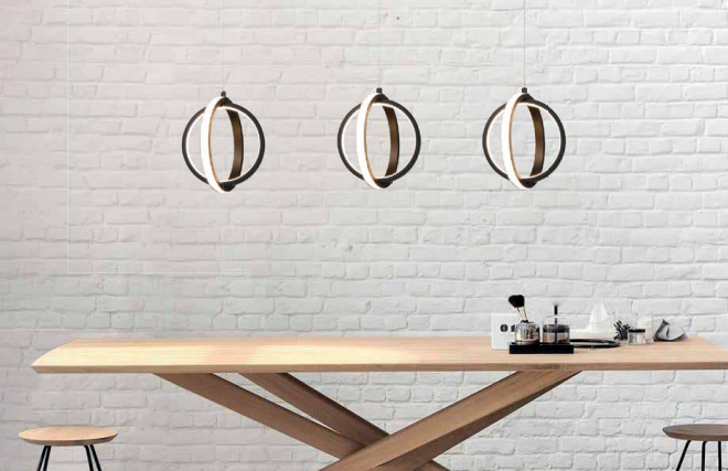 Πρόκειται για ένα μαύρο μεταλλικό κρεμαστό φωτιστικό μίνιμαλ σχεδίασης. Η λευκή ακρυλική του επιφάνεια καλύπτει τον LED φωτισμό θερμής απόδοσης.
