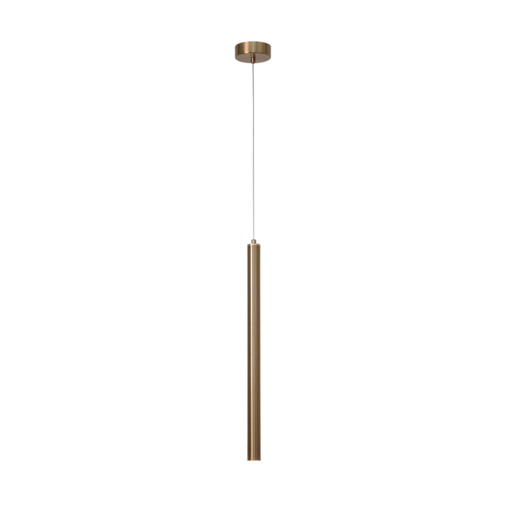 Πρόκειται για ένα χρυσό μεταλλικό κρεμαστό φωτιστικό μίνιμαλ σχεδίασης με LED φωτισμό θερμής απόδοσης.