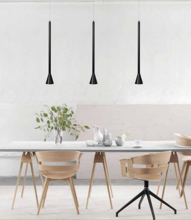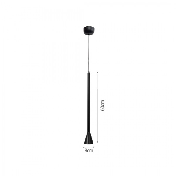 Πρόκειται για ένα μαύρο μεταλλικό κρεμαστό φωτιστικό μίνιμαλ σχεδίασης με LED φωτισμό θερμής απόδοσης.