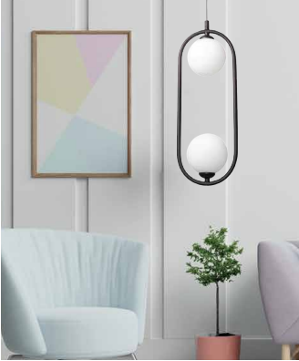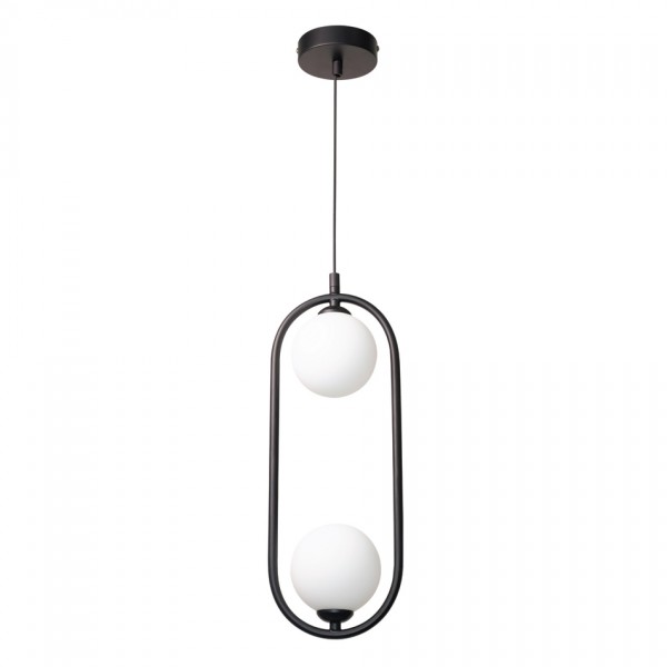 Κρεμαστό φωτιστικό σε μαύρη απόχρωση και λευκή οπαλίνα 2XG9 D:40cm