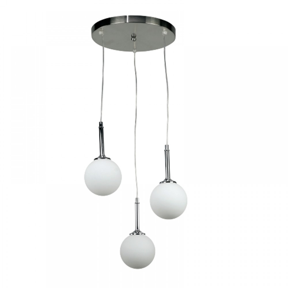 Κρεμαστό φωτιστικό από χρώμιο μέταλλο και λευκή οπαλίνα 3XG9 D:30cm